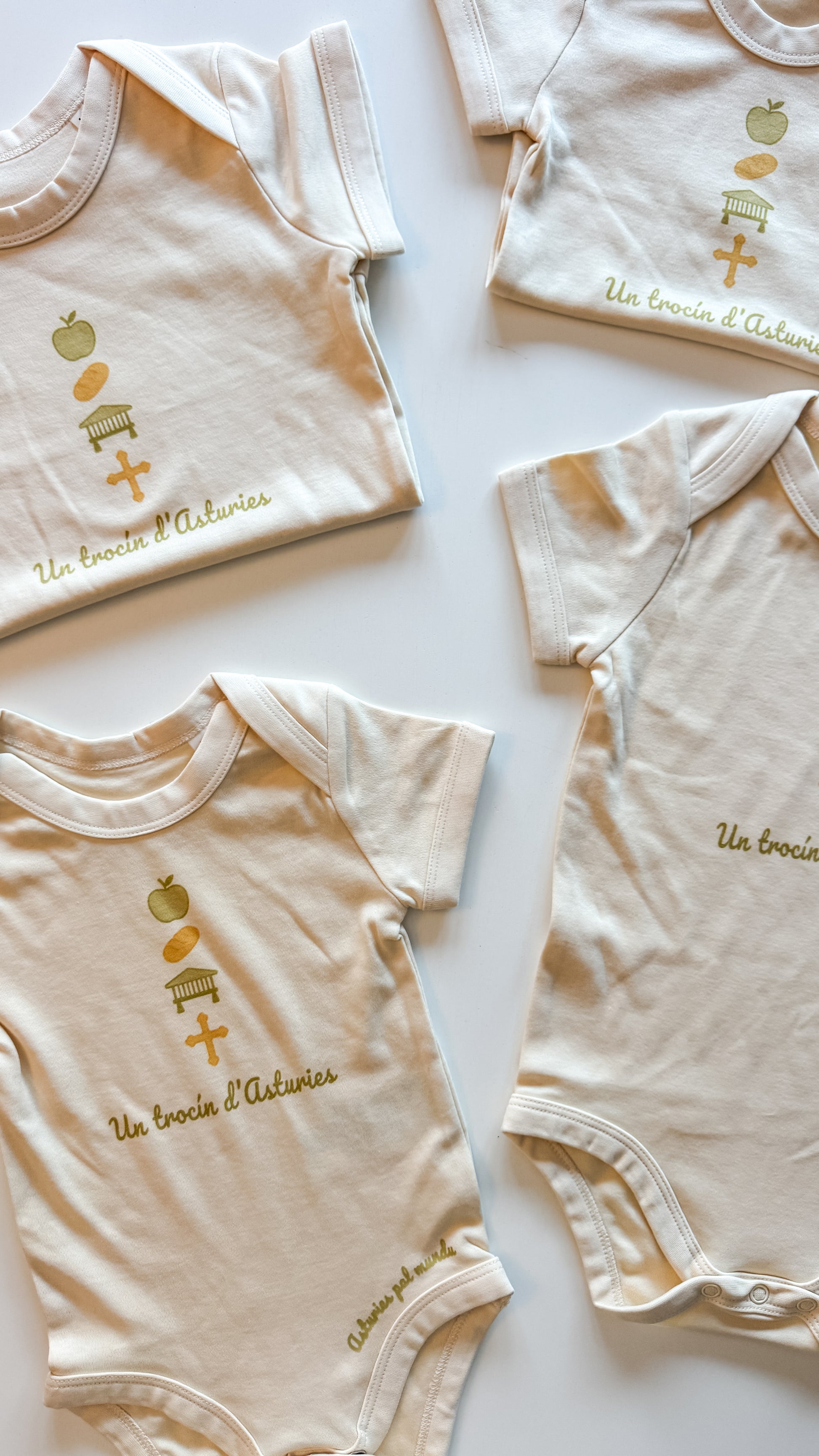Tu peque también puede llevar con orgullo un cachín d’Asturies. Este body suave, cómodo y con cierre de corchetes es perfecto para los primeros paseos, las siestas largas y, cómo no, ¡las espichas familiares!