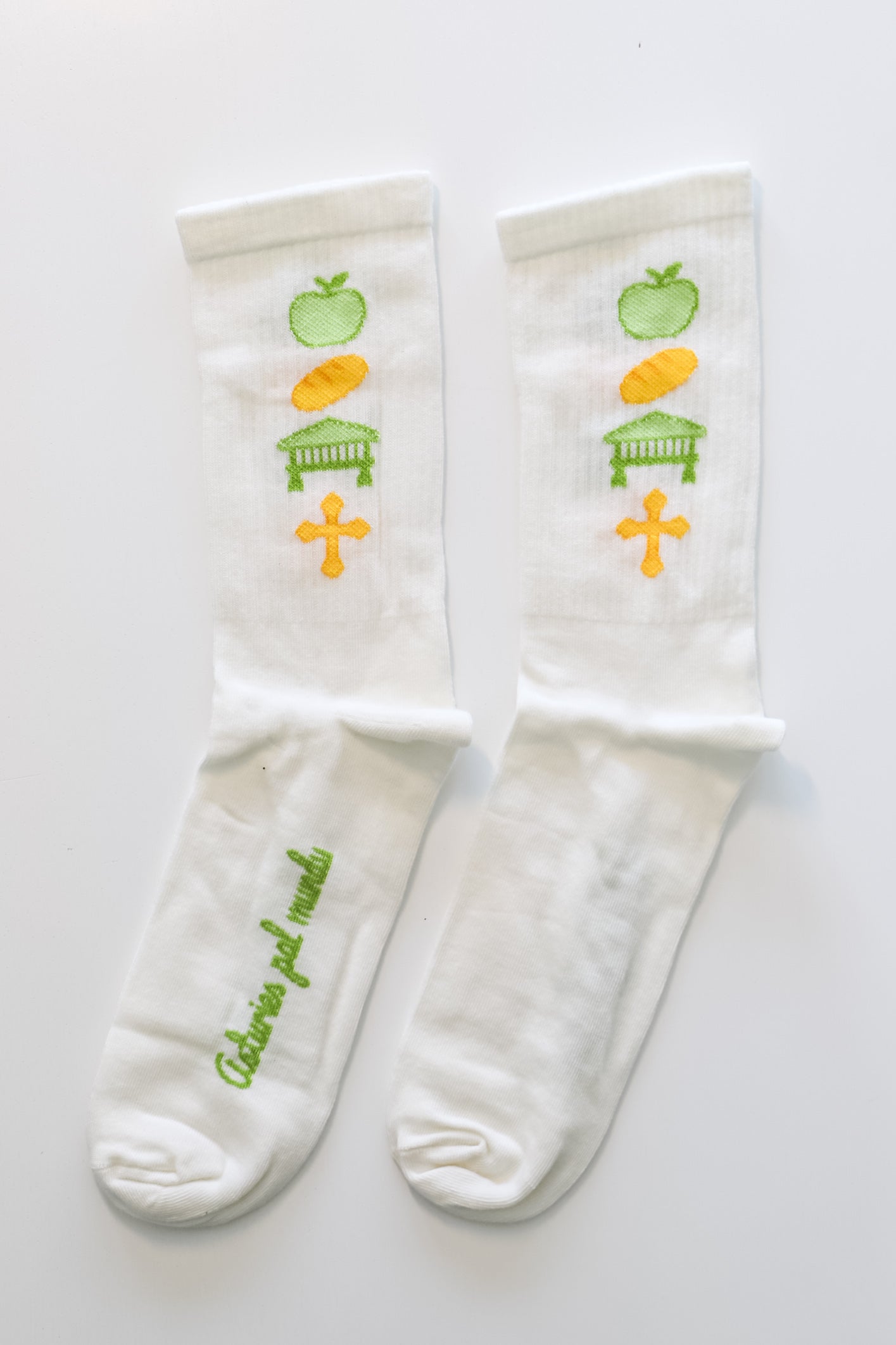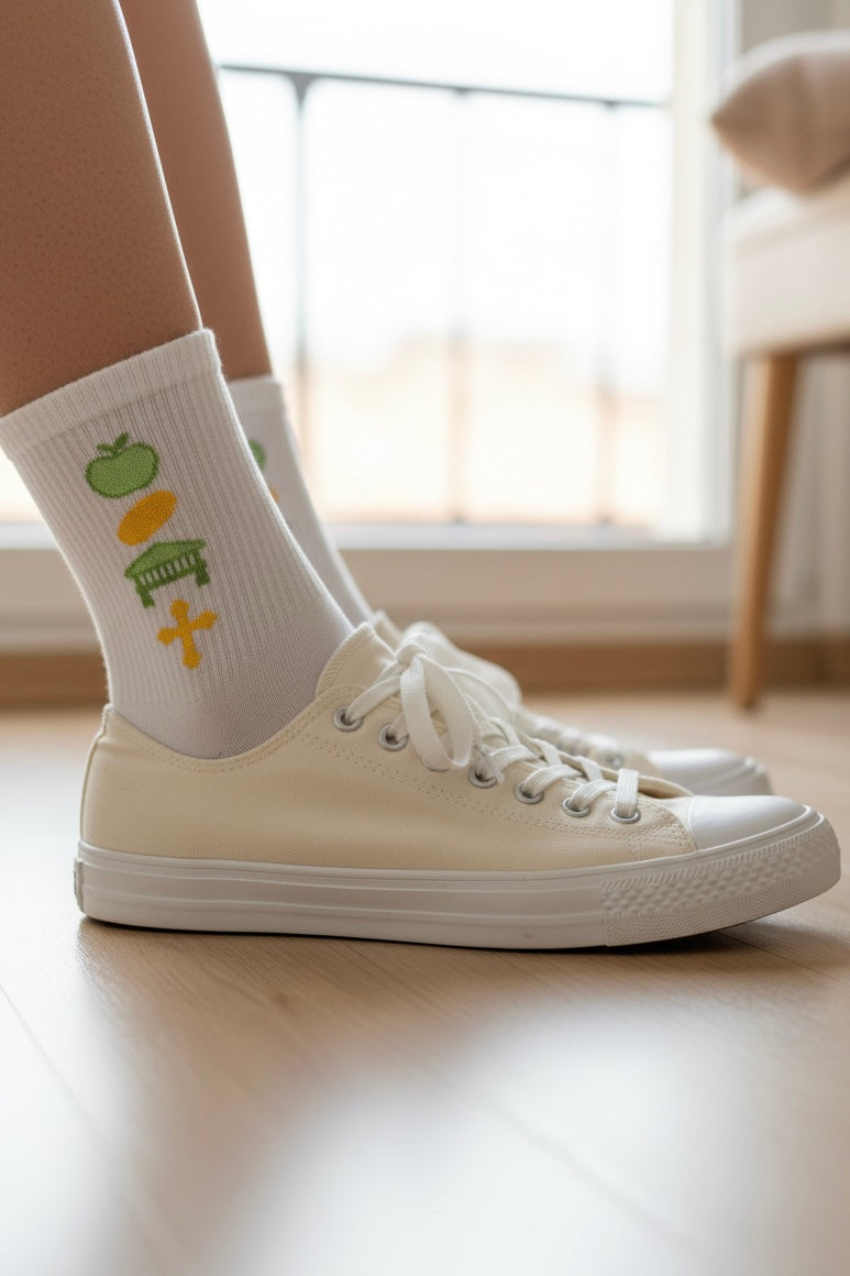 ¡Pies calientes y corazón asturianu! Estos calcetines bordados combinan comodidad y orgullo local con simbolos que nun fallan: manzana, horreo, bollu preñao y cruz de la victoria.