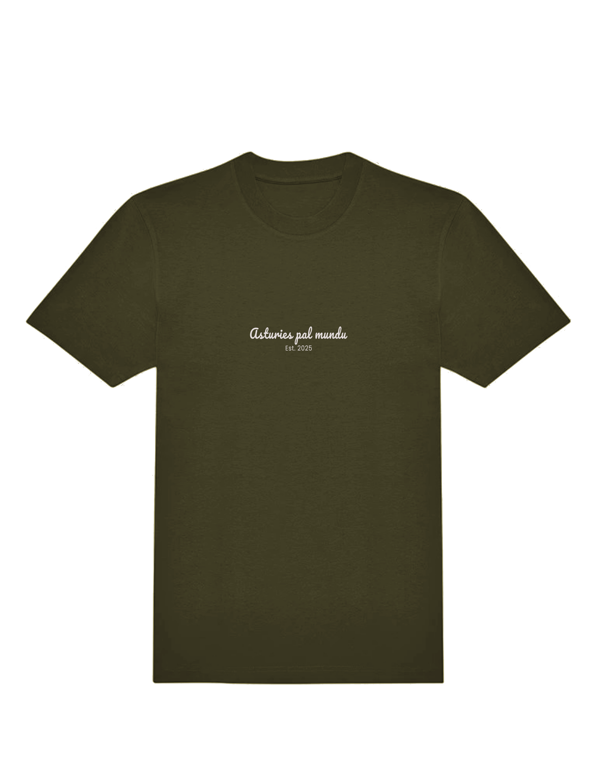 Esta ye la camiseta de Asturies pal mundu éxito de ventas, por eso nos hemos animado a crearos otro colorín. Nuestro logo que está inspirado en el paisaje rural: un hórreo y una botellina de sidra mirando al mar, con las montañas observando al fondo. Pensada pa sentir Asturies cerquina.